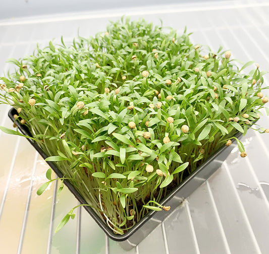 Our microgreens are planted in shallow 5 x 5 trays and then...