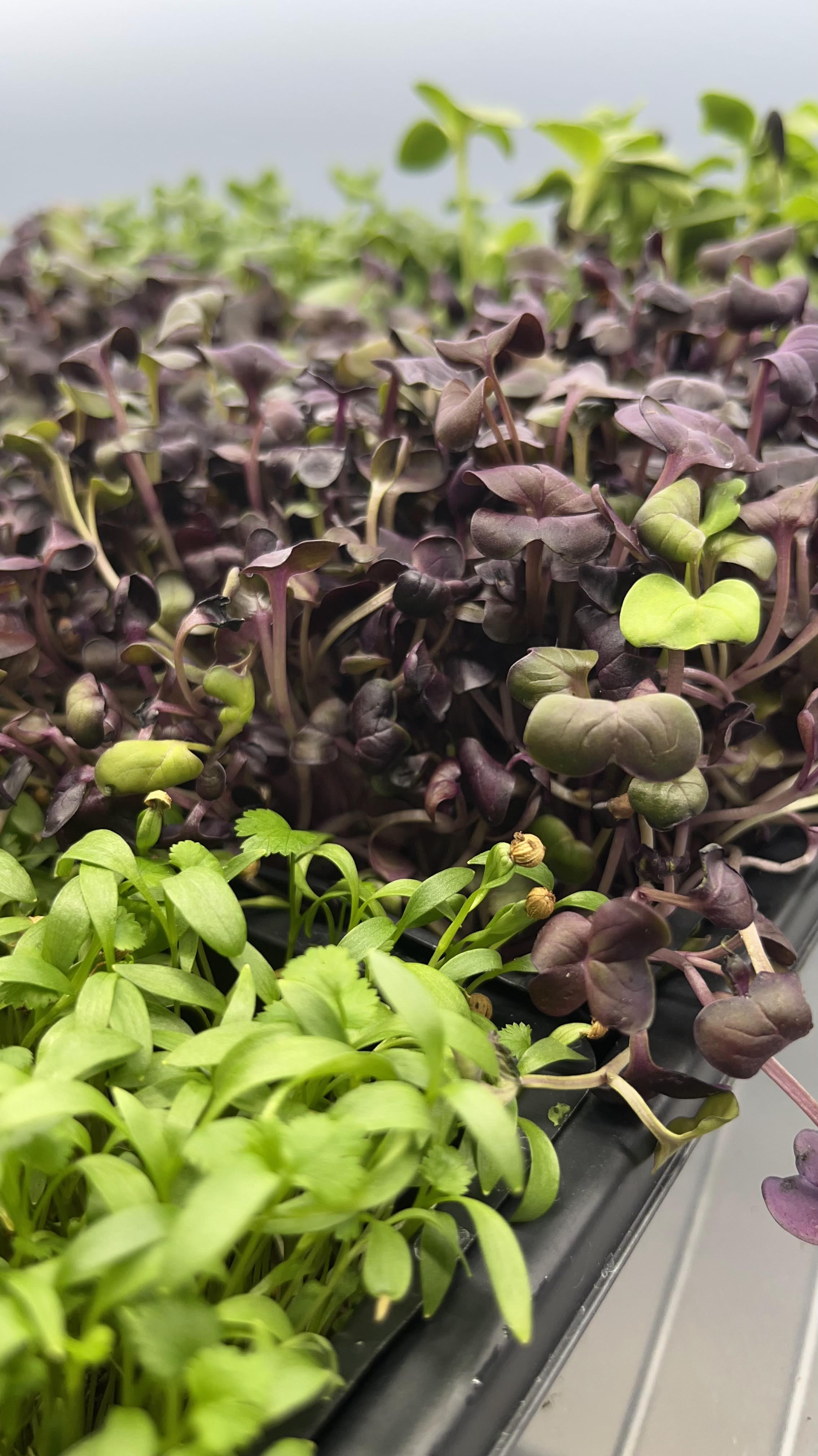 Micro Red Cabbage, Micro Red Russian Kale, and Micro Broccoli.